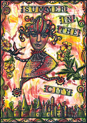 5. Eine märchenhafte Seite. Die Farben gefallen mir wahnsinnig gut und die ganze Zusammenstellung mit der süßen Stadt, den Blumen und der tanzend-fliegenden Dame, einfach wunderschön!